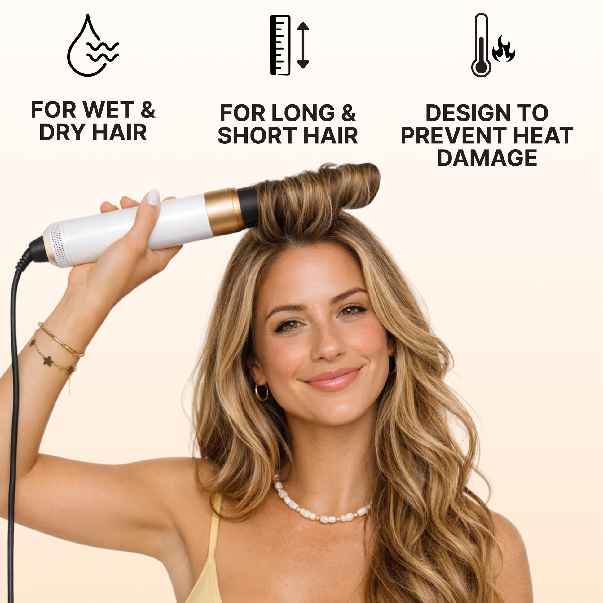 Designed for versatility, the 5-in-1 MultiStyler combines drying, curling, smoothing, straightening, and volumizing in one streamlined tool. Interchangeable attachments eliminate the need for multiple devices while achieving salon-style results at home.